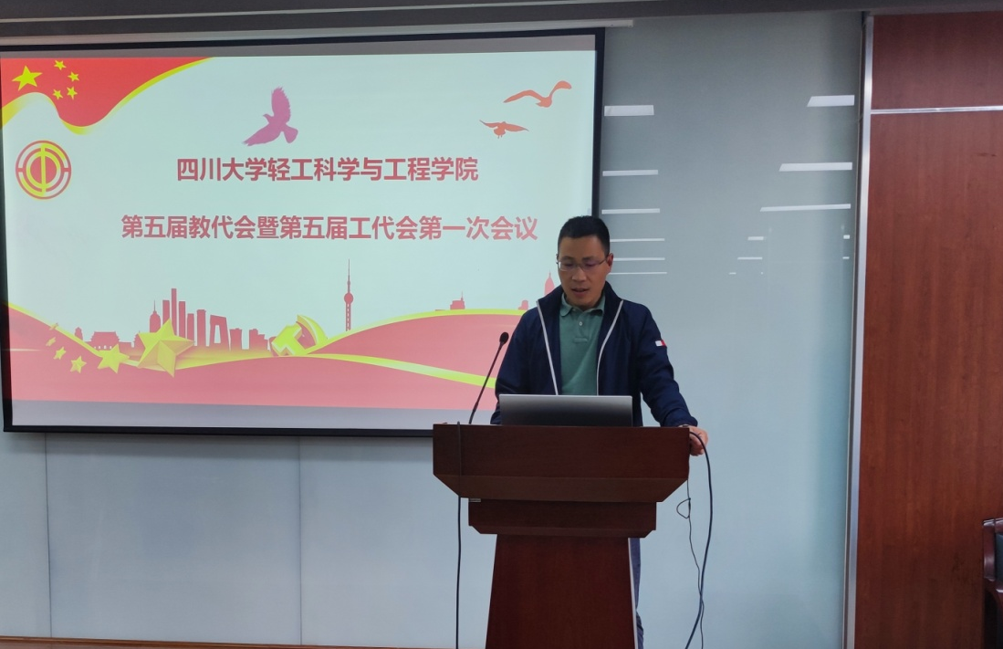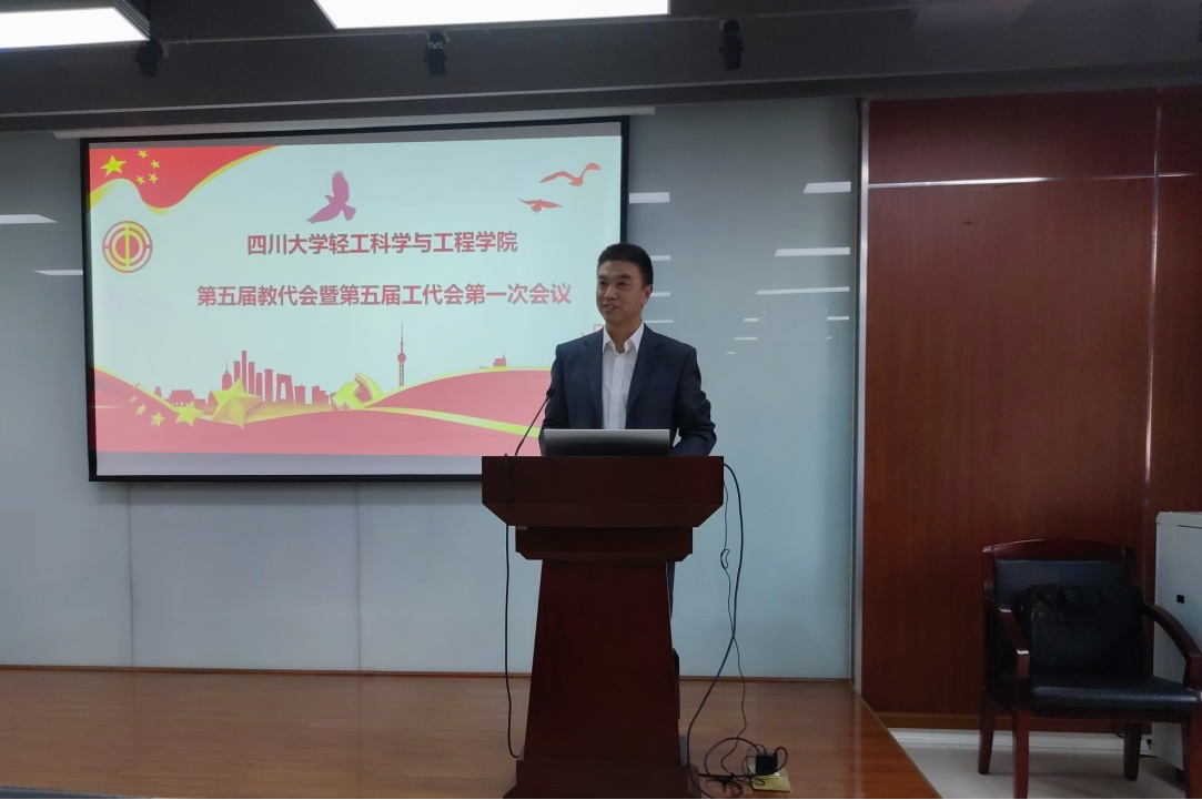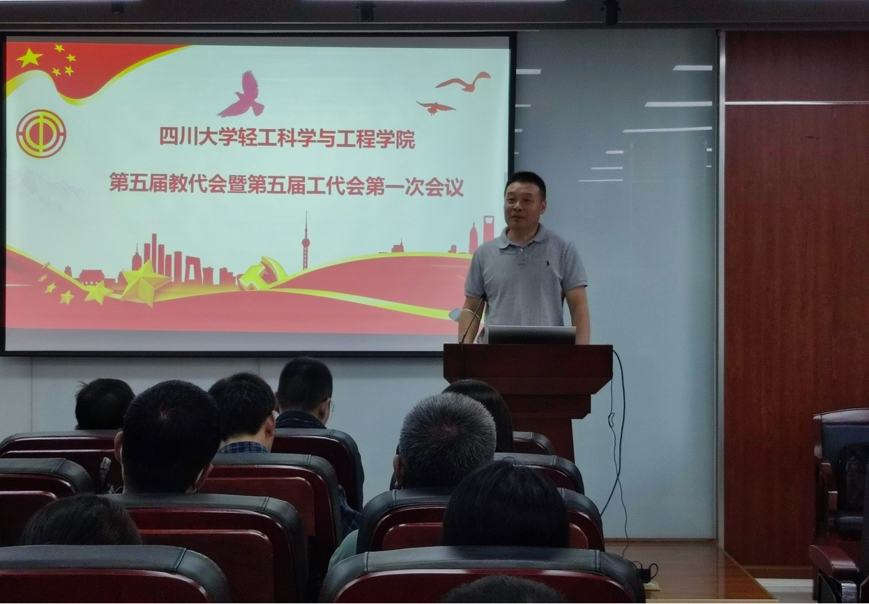 9月27日,轻工科学与工程学院第五届教(职)代会、工代会第一次全体会议在皮革楼215报告厅召开。校工会副主席吕海涛,学院党委书记李天富,学院院长彭必雨,学院党委副书记兼纪委书记冯国涛,学院第四届工会主席肖凯、副主席肖红艳和学院第五届双代会代表共同出席了大会。大会预备会议及正式会议分别由学院党委副书记兼纪委书记冯国涛和大会执行主席肖凯主持。会议听取了《第五届轻工科学与工程学院教(职)代会、工代会代表选举办法和资格审查报告》,审议通过了《第五届轻工科学与工程学院教(职)代会、工代会第一次会议大会执行主席团名单》、《第五届轻工科学与工程学院教(职)代会、工代会第一次会议大会议程》和《第五届轻工科学与工程学院工会委员会候选人名单》。