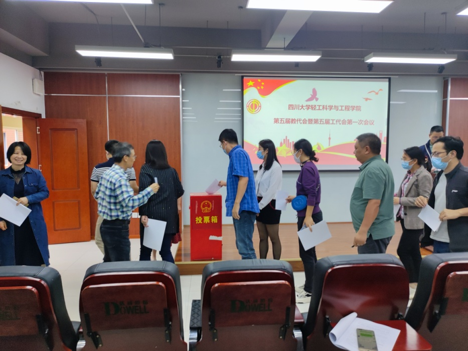学院第四届工会主席肖凯同志作了《轻工科学与工程学院第四届教(职)代会暨工会工作报告》。与会代表审议通过了第四届教(职)代会暨工会工作报告,审议通过了工会财务报告,审议通过了选举办法、工会委员会委员候选人名单,审议表决通过了大会总监票人、监票人、计票人名单。随后,总监票人冯国涛同志主持大会选举,按照选举程序选举了王巍、邓莎、刘文涛、李洁、陈胜、董怡、颜俊等7位同志为轻工科学与工程学院第五届工会委员会委员。