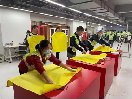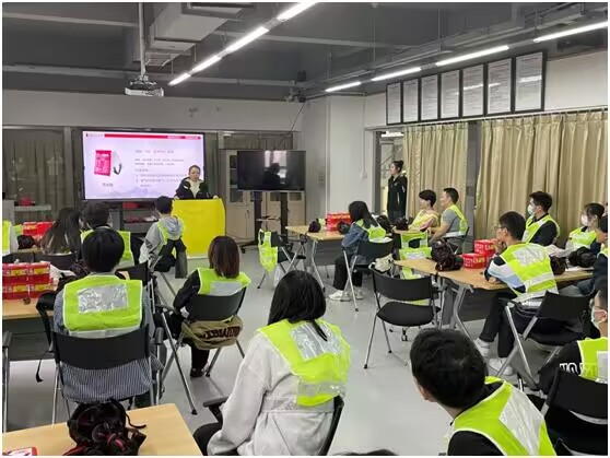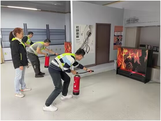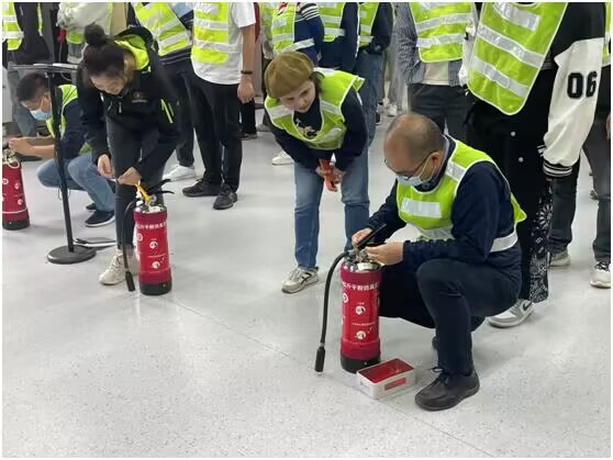 培训分为两个阶段。第一阶段为理论讲授,授课老师从火灾的预防、火场逃生与自救、初期火灾扑灭技巧等方面讲述了火灾预防和处置方面的知识。授课老师强调,发生火灾时首先要确定火灾是否有扑救的可能,在保证自身安全的前提下有效扑救;无法扑救时,应选择尽快逃生,并报警。在火场逃生过程中,要根据应急逃生指示牌的标识,以低姿态快速靠近出口,期间利用湿毛巾、呼吸面具等遮掩口鼻,靠近门时需用手背试温。同时,授课老师还详细讲解了灭火器、灭火毯、防火面罩等消防器材的类型,是否有效的判断,并讲授了相关消防器材的使用方法。