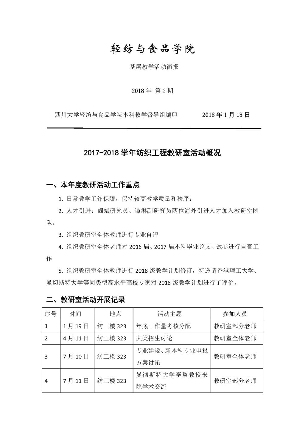 基层教学活动简报(2018年 第2期)