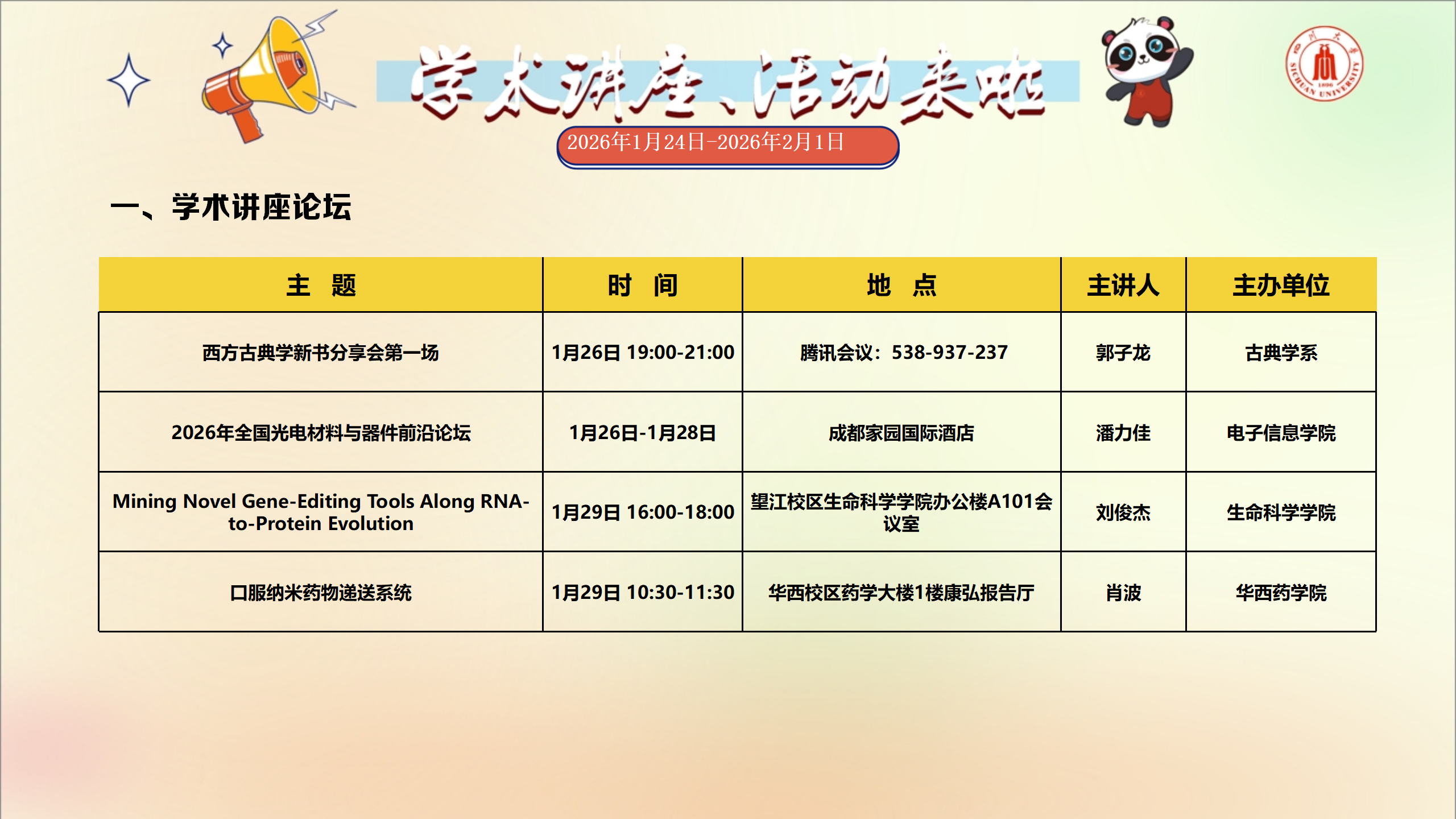 学术讲座预告(2026年1月24日-2026年2月1日)