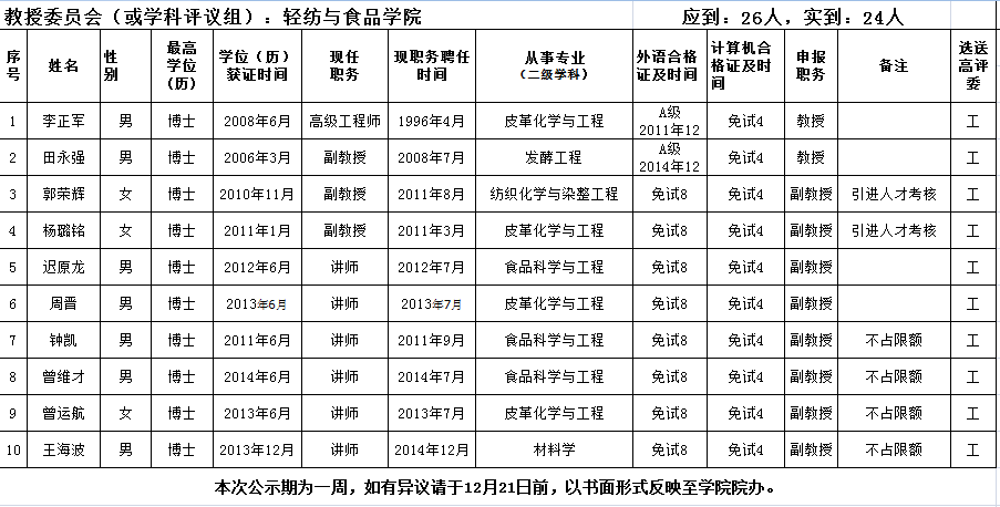 2016年专业技术职务申报教授委员会评议结果公示