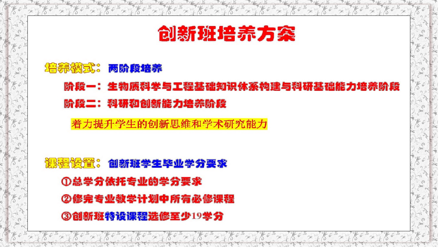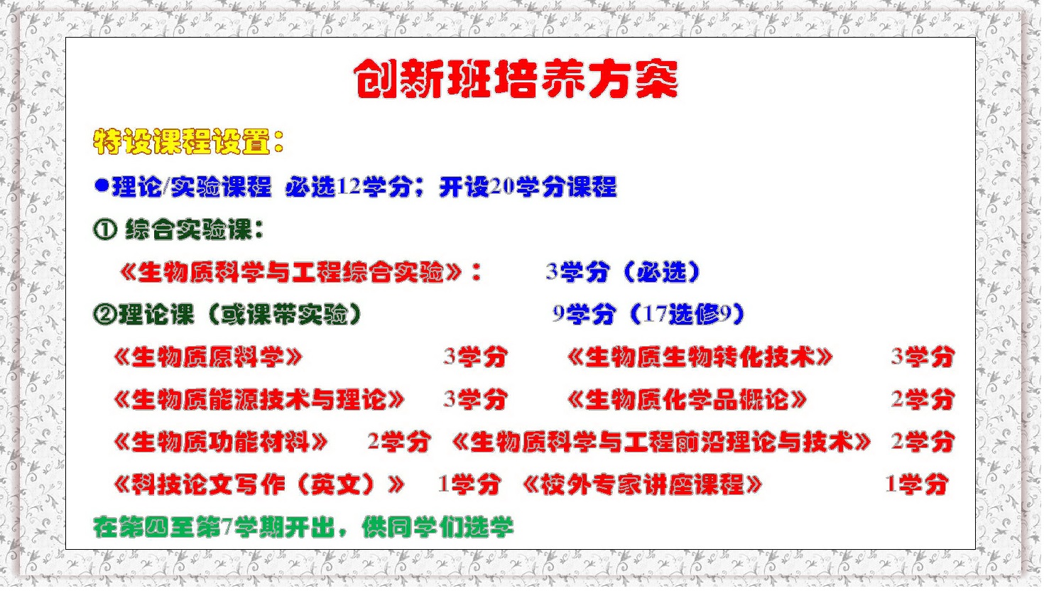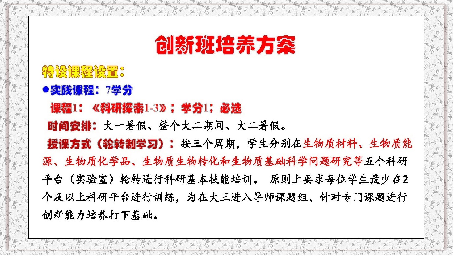 一、生物质科学与工程创新班2020年选拔条件、考核方案、操作指南详见教学处通知。(点击去往)