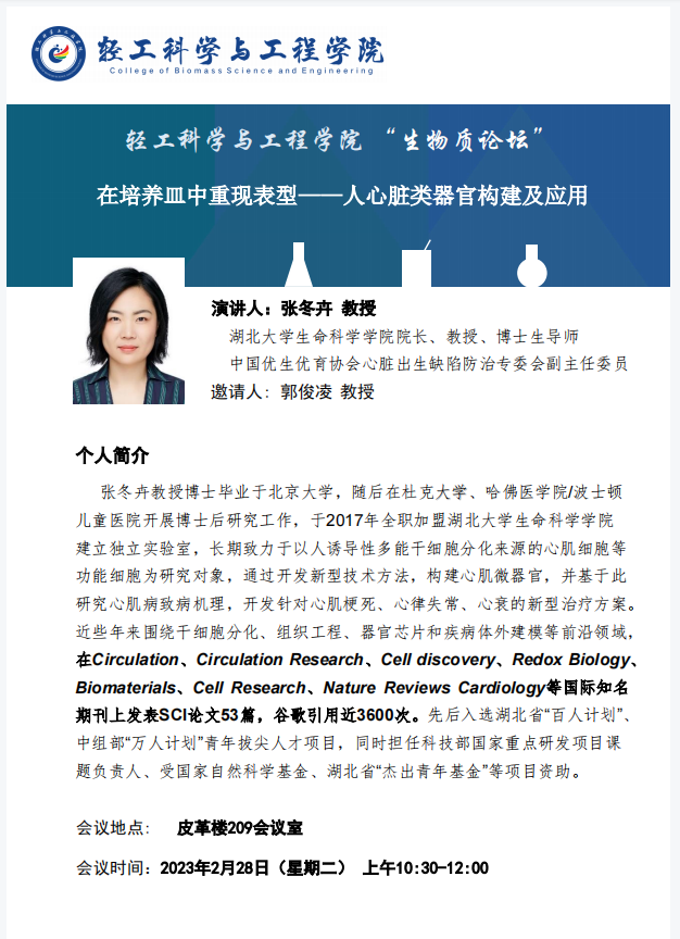生物质科学与工程论坛:张冬卉教授 学术报告