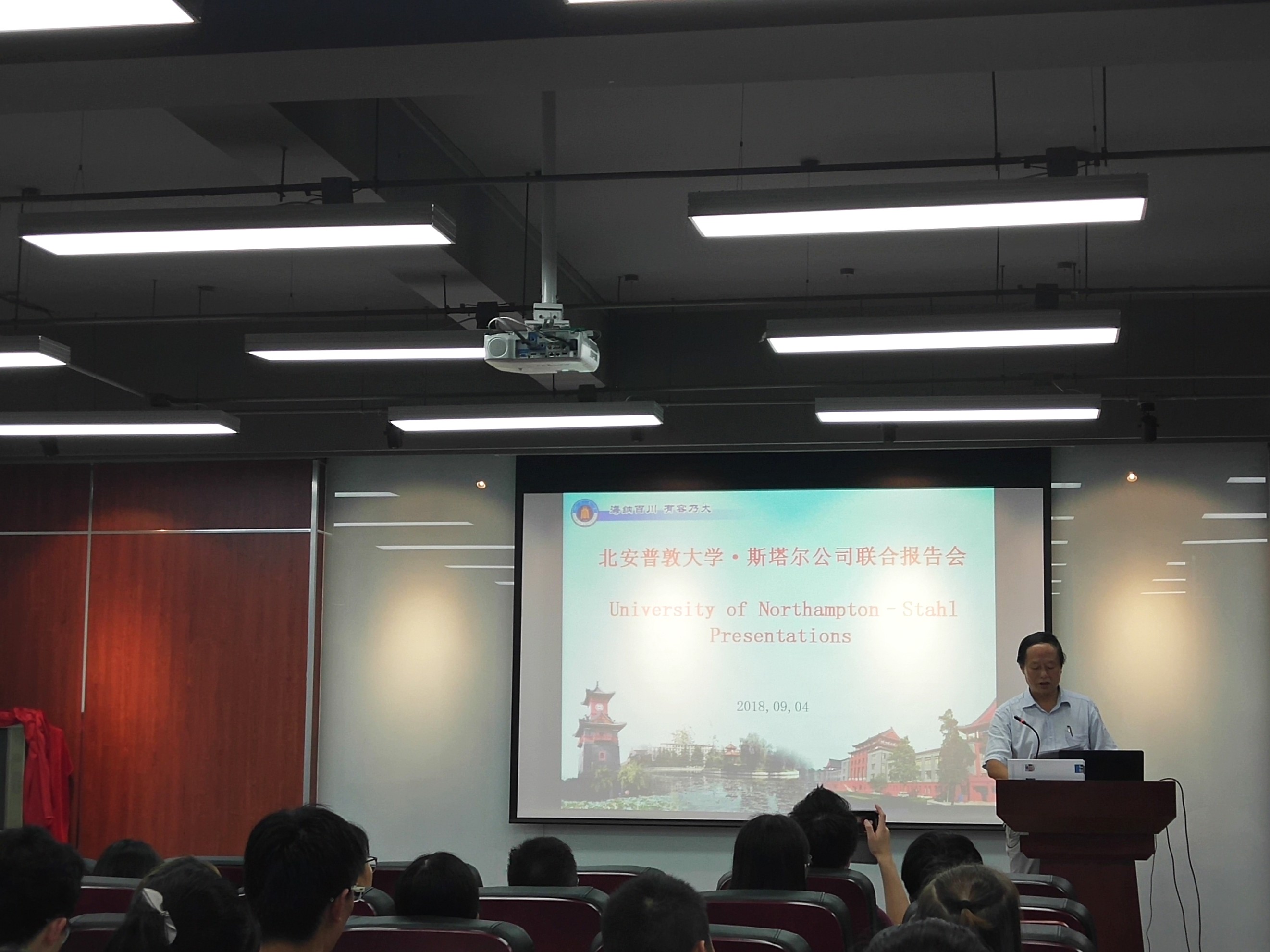 2018年9月4日晚,我院与英国北安普敦大学、斯塔尔公司联合报告会于皮革楼215报告厅如期进行。本次讲座报告人为英国北安普敦大学皮革技术创意研究院负责人Rachel Garwood、斯塔尔公司可持续发展及斯塔尔学院负责人Michael Costello以及斯塔尔公司广州GTC实验室经理李艳。轻纺与食品学院院长何有节教授为本次讲座的嘉宾,我院2015、2016级辅导员和轻化工程专业学生到场参加了活动。