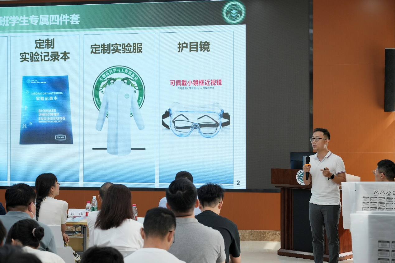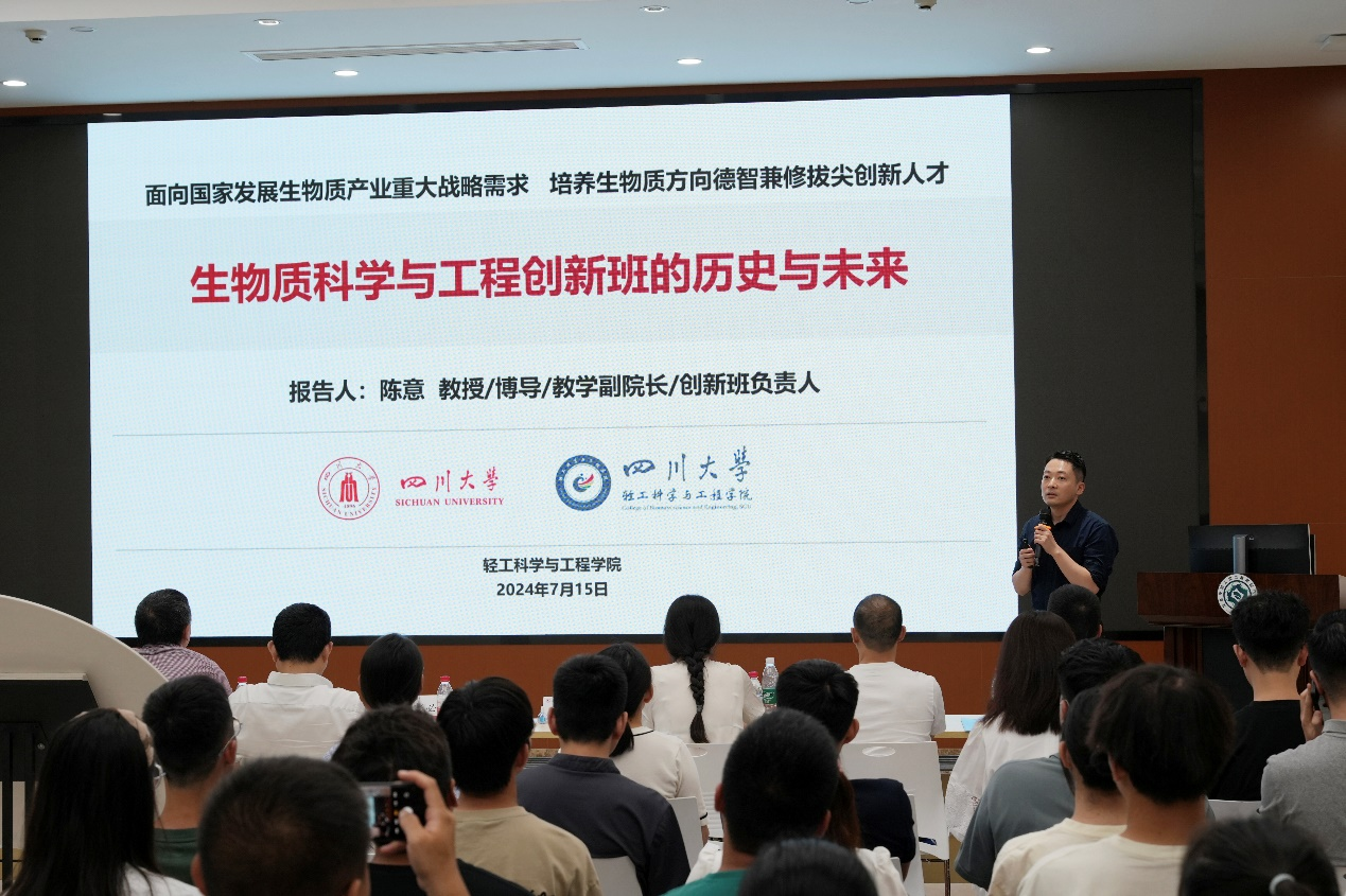 2024年7月15日下午,2023级生物质科学与工程创新班开班仪式在皮革楼工业互联网演播厅隆重举行。参加此次开班仪式的有中国工程院院士石碧教授、学院党委书记李天富、党委副书记冯国涛、院长彭必雨、副院长陈意、迟原龙、周建飞,以及生物质与皮革工程系系主任林炜教授、副系主任程海明教授,还有创新班的导师、班主任及全体2023级创新班学生。开班仪式由冯国涛副书记主持。