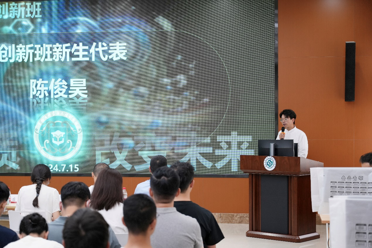 在接下来的环节中,2023级创新班新生代表陈俊昊以及教师代表张伟华特聘研究员相继发言,他们分别从学生与教师的角度表达了对创新班未来发展的期待与信心。