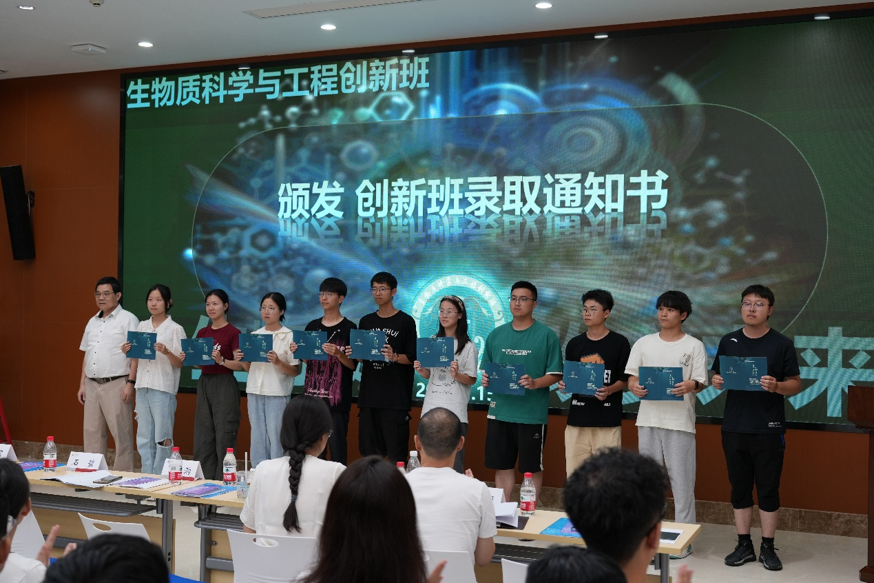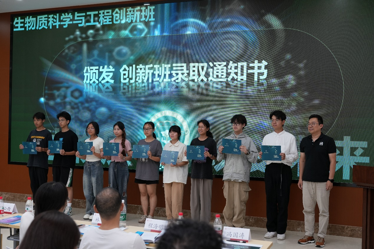 紧接着,李天富书记、彭必雨院长、林炜教授、迟原龙副院长为同学们颁发了创新班录取通知书,石碧院士为创新班班主任颁发了聘书。