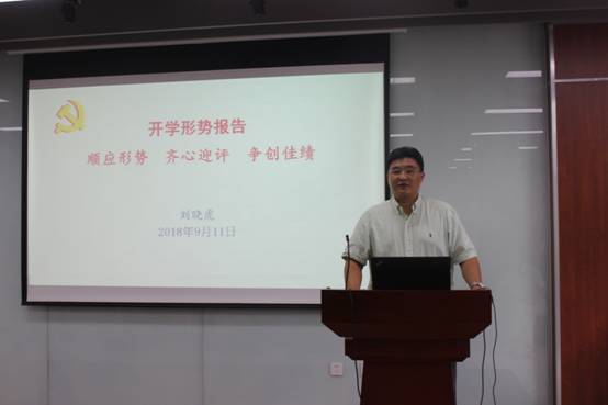 在会上,彭必雨院长首先介绍了此次评估的考察日程安排、评估专家清单、审核评估考察的“五个度”、审核评估考察内容(6+1项目)、专家进校考察工作方式和专家走访学院的形式。然后,彭院长重点介绍了学院迎接专家进院的工作安排事项及时间节点,包括学院自评报告、汇报PPT及支撑材料和试卷、毕业论文材料等案头材料的整理及摆放;专家调阅材料和专家访谈的责任人及协调人安排;本科实验室和平台实验室安排;评估期间上课教师所需注意事项等等。最后,刘晓虎书记在开学形势报告中针对本科审核评估工作,为学院老师加油打气。
