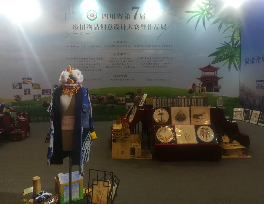 2018.11.10成都设计周在新会展中心举行,业部分师生出席,学生作品参加此设计周上举办的四川省废旧物品创意设计大赛获得十佳作品称号。