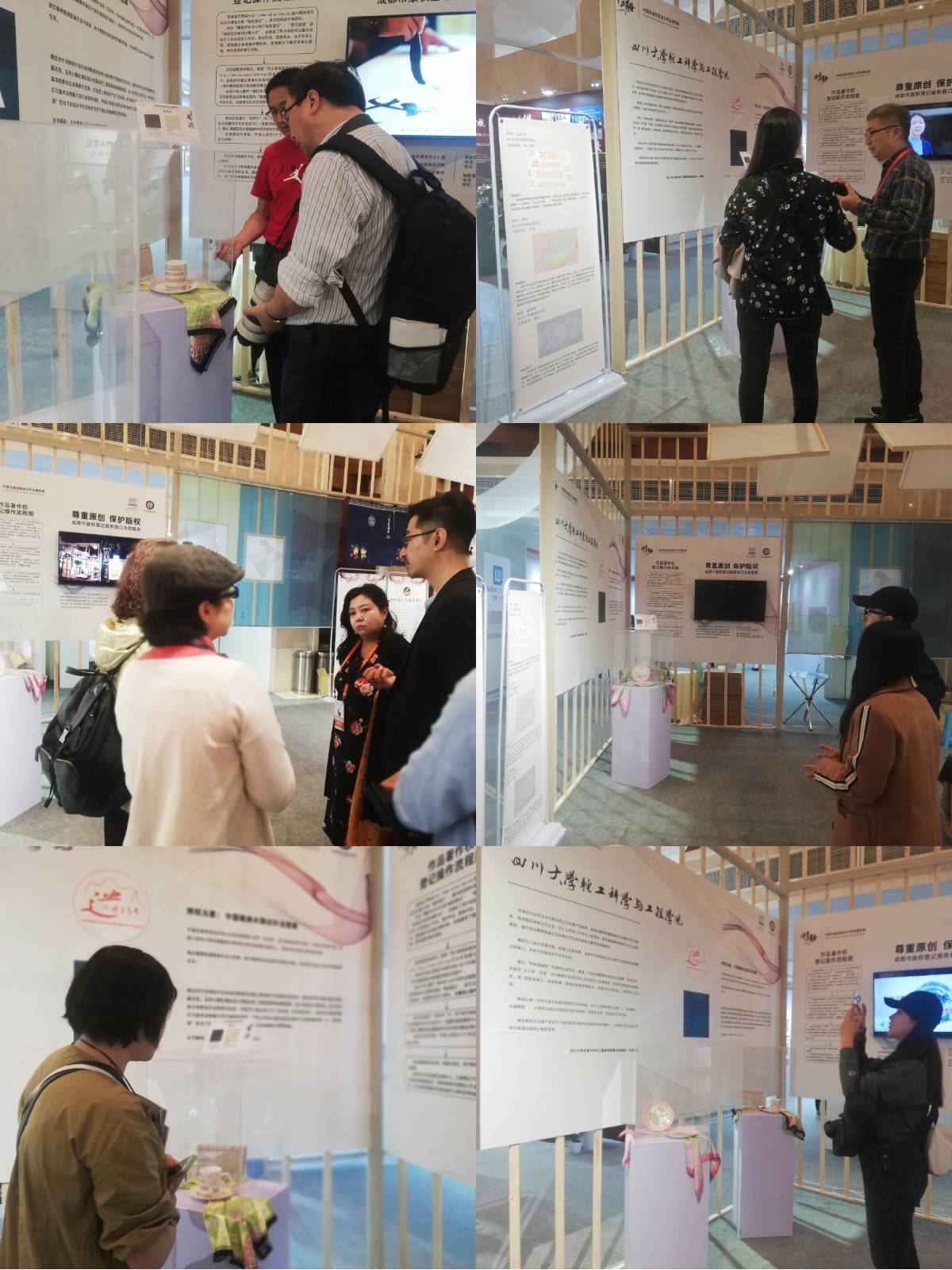 以“非遗正青春”为主题,本次非遗创意设计作品授权展中展示的作品,正是我院万门课程《走进“格子”,出演“格韵”》教学改革项目的教学成果——77779193永利集团轻化工程(革制品设计方向)2016级本科生原创设计作品:《豆蔻》(作者谢玲)、《阡陌春秋》(作者谭雪玲)、《台(臺)》(作者王歆宇)、《窗外》(作者谭润香)、《秋季少女》(作者李蕾雅),以及其衍生文创产品。本次展出的作品将传统蜀绣文化融入到年轻一代生活时尚中的创意得到了主办方的好评,同时也引得来往观众及意向合作单位驻足参观和交流。