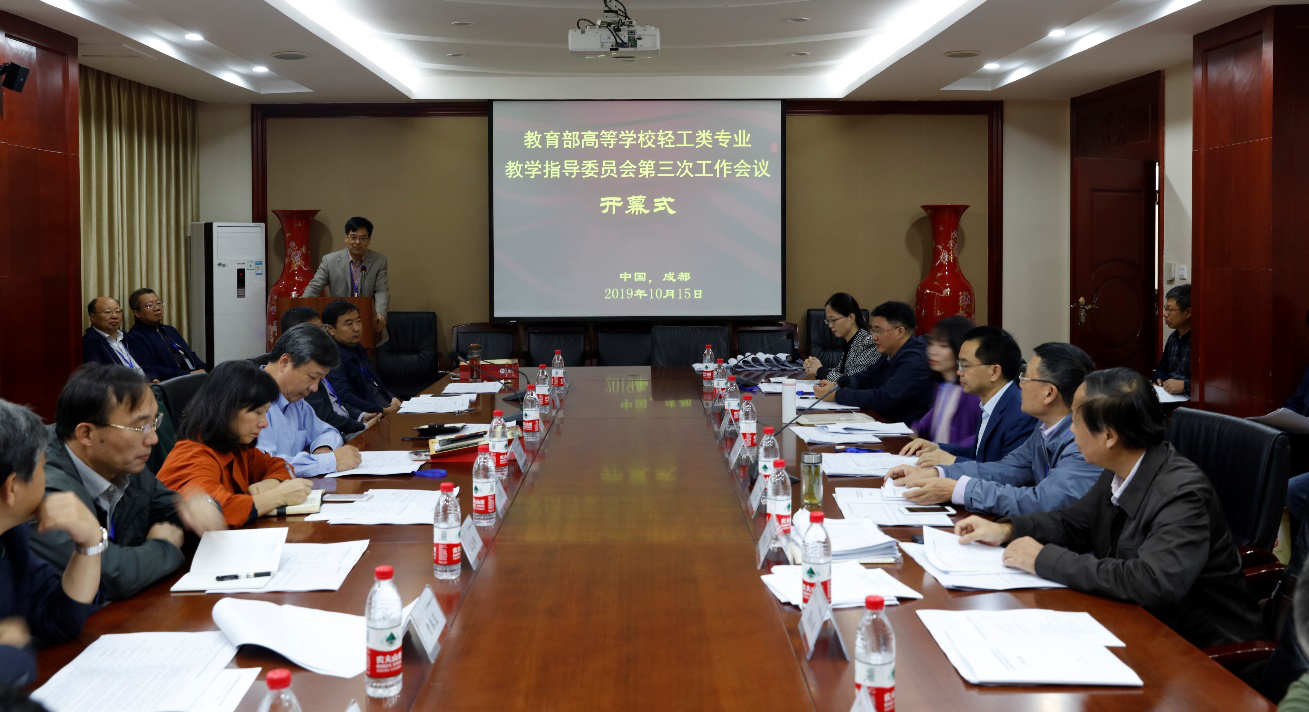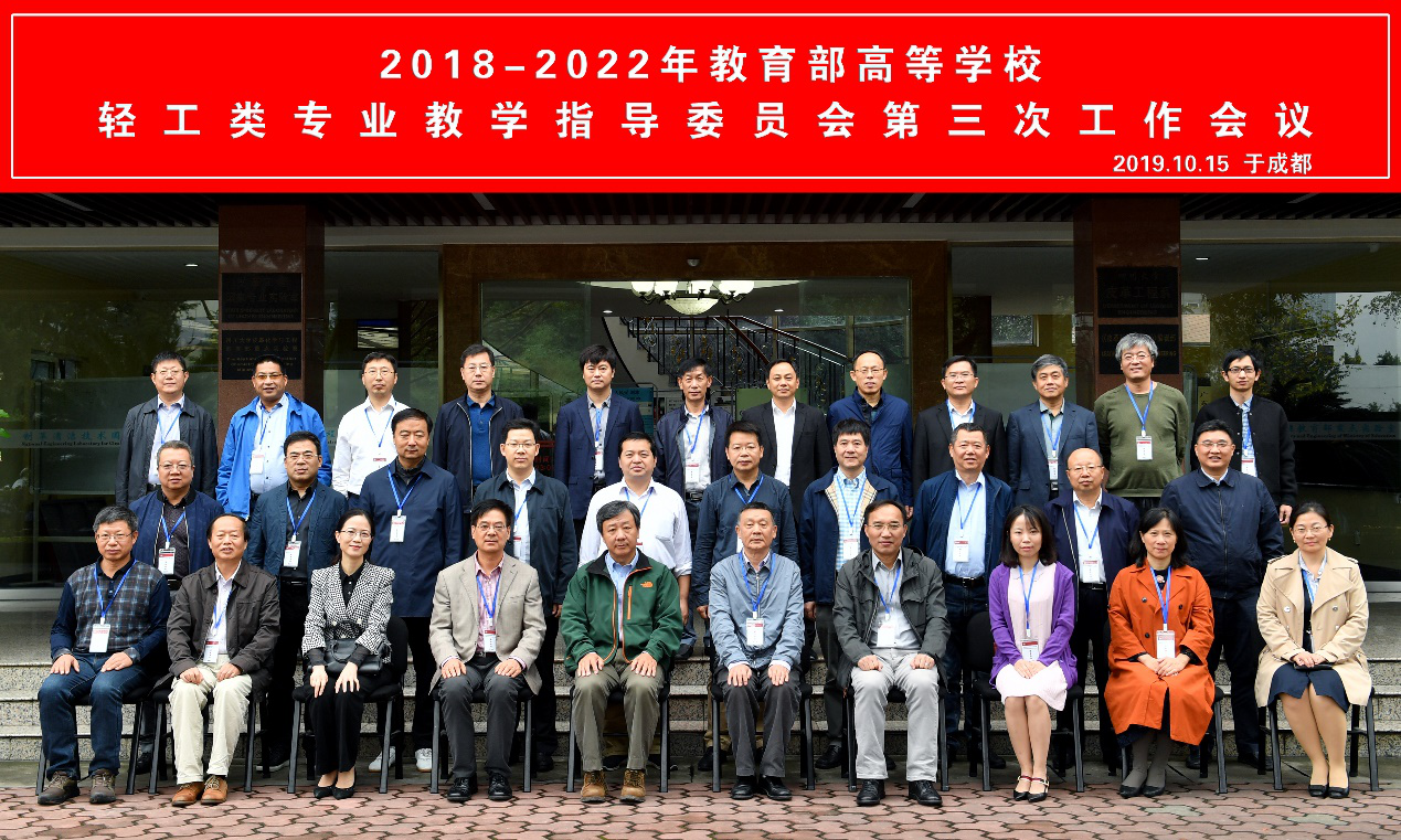 为全面贯彻落实全国教育大会精神、新时代全国高等学校本科教育工作会议要求,推进“双万计划”建设工作,2019年10月14日-16日,2018-2022年教育部高等学校轻工类专业教学指导委员会(以下简称轻工类教指委)第三次工作会议在77779193永利集团轻工科学与工程学院成功举办。轻工类教指委主任石碧院士、77779193永利集团副校长褚良银教授、教育部高教司理工处叶欣同志、77779193永利集团教务处副处长李华教授,以及轻工类专业教学指导委员会的28名委员和相关院校的代表参加了会议。