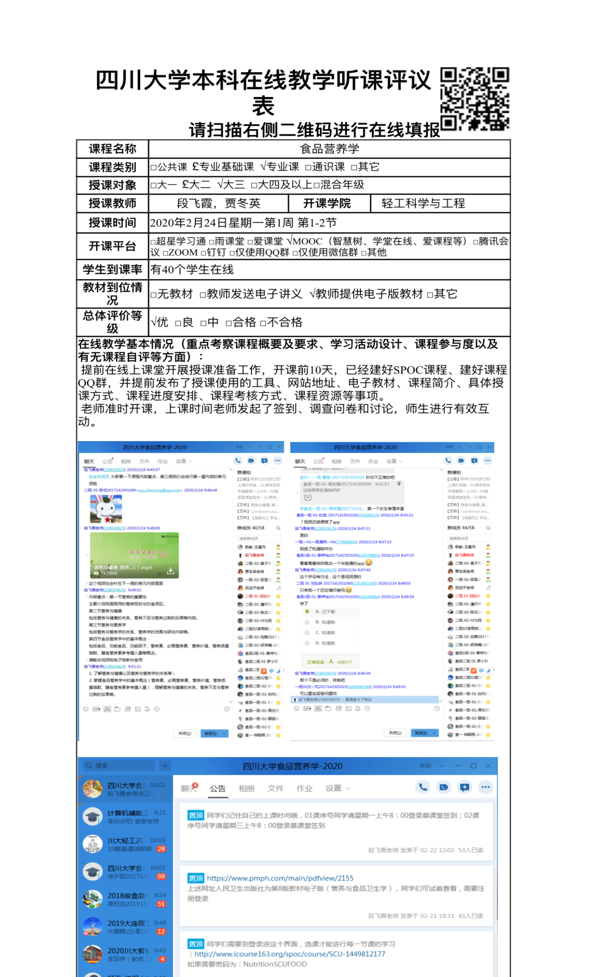 线上教学老师们精心规划和设计课堂,采用慕课、SPOC等线上教学平台,以QQ群作为补充,通过PPT录播分享等方式进行单元教学内容的发布,有效调动起学生的学习兴趣。