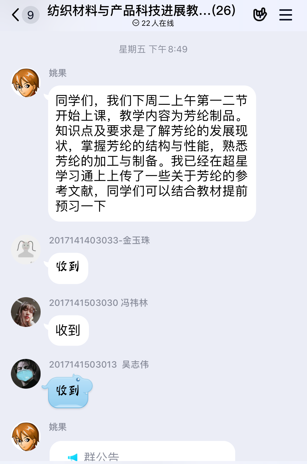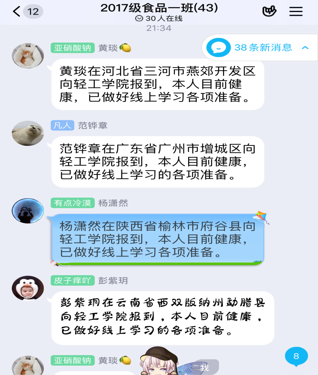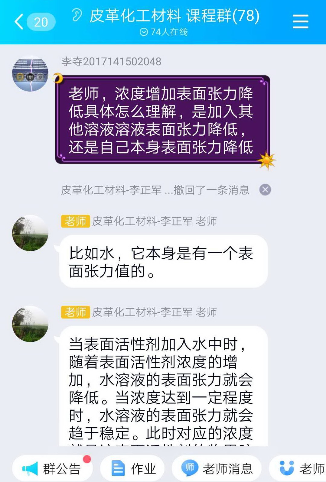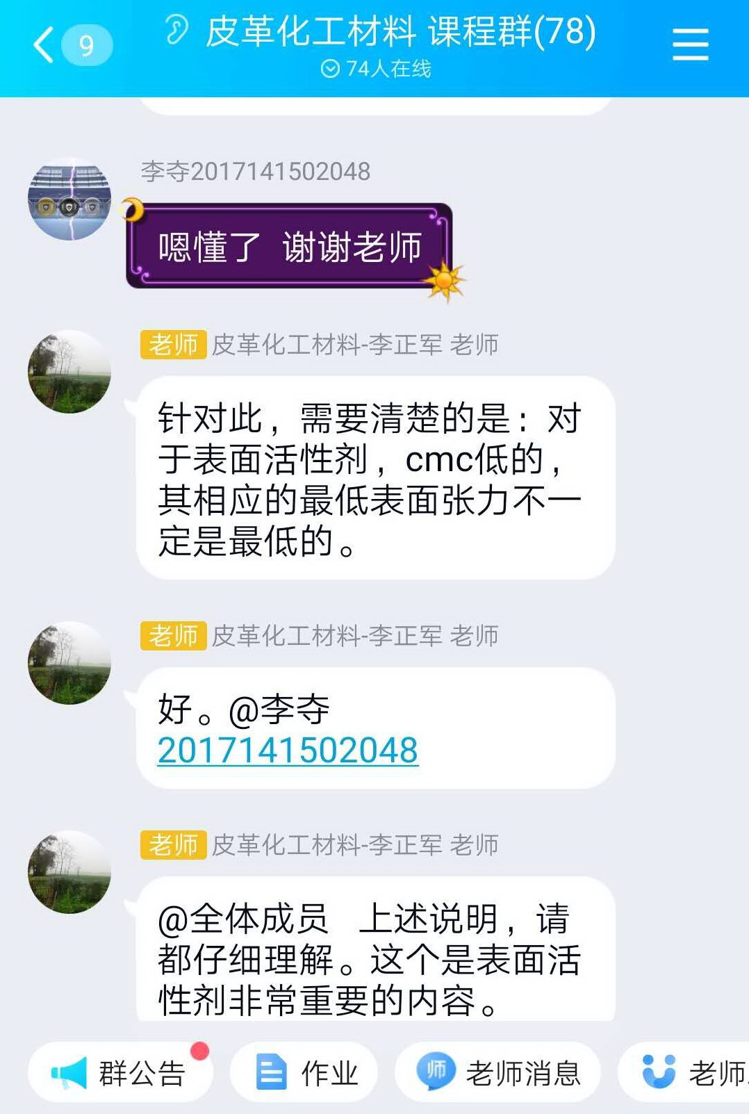 王振亚-轻工科学与工程学院轻化工程专业2016级本科生:通过今天的在线学习,我充分感受到了任课老师的认真与负责,虽然只是线上教学,但是教学质量依然很高,老师会提前将我们要学习的内容发布到讨论组中,并提醒我们上课所需要准备的资料。我相信在我们和老师的共同努力下,能较好的完成学习内容,也相信疫情一定会很快过去,我们也能很快回到学校!