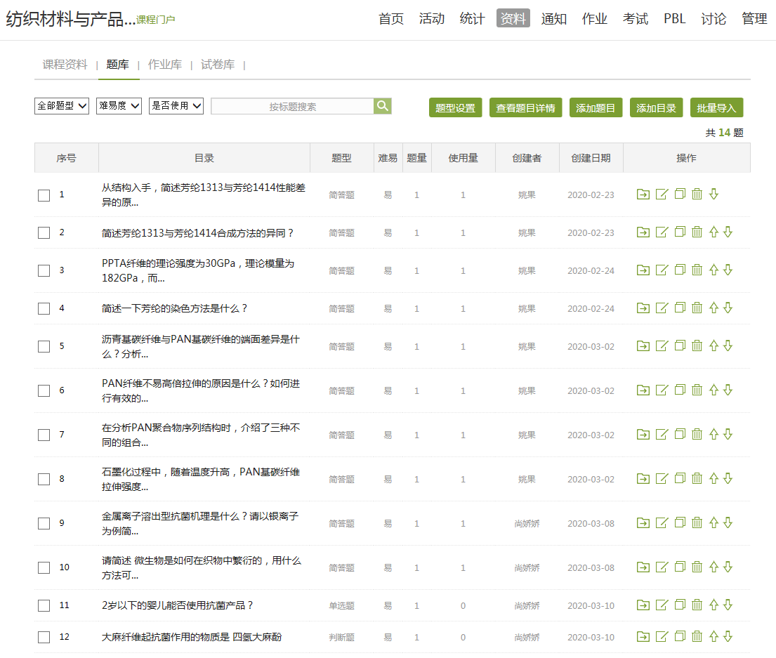 姚果老师在《纺织材料与产品科技进展》教学中,通过前期不断熟悉网上教学方法与途径,最终选定依托超星学习通协同QQ群的方式进行授课。课前经过充分准备,将相关参考文献与资料,录制PPT讲解视频,教案、课堂问题、作业以及课后作业上传至学习通,为顺利进行该课程网上教学打下坚实基础。