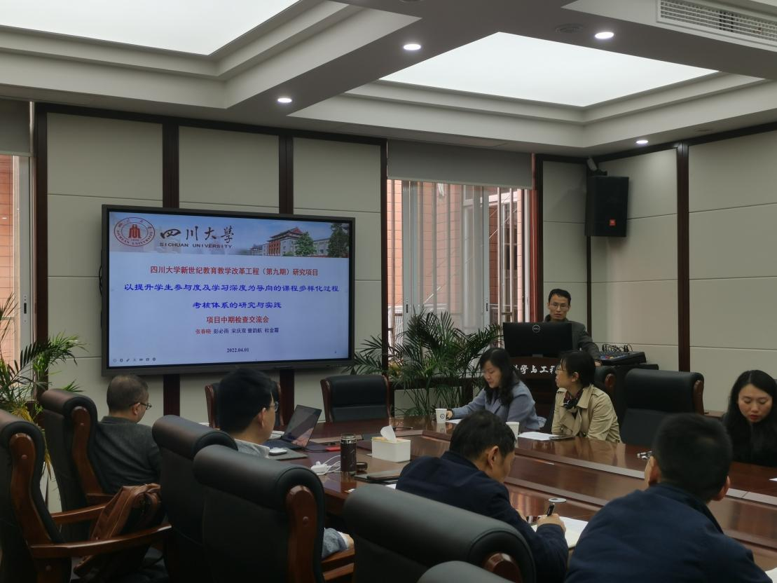 彭必雨院长首先结合一流专业建设,阐述了教改工作的重要性及学院2022年教改工作的重点,并对教改项目中期检查交流会的流程和意义进行了说明。随后,各项目负责人分别对项目的开展情况及取得的阶段性成果进行汇报。