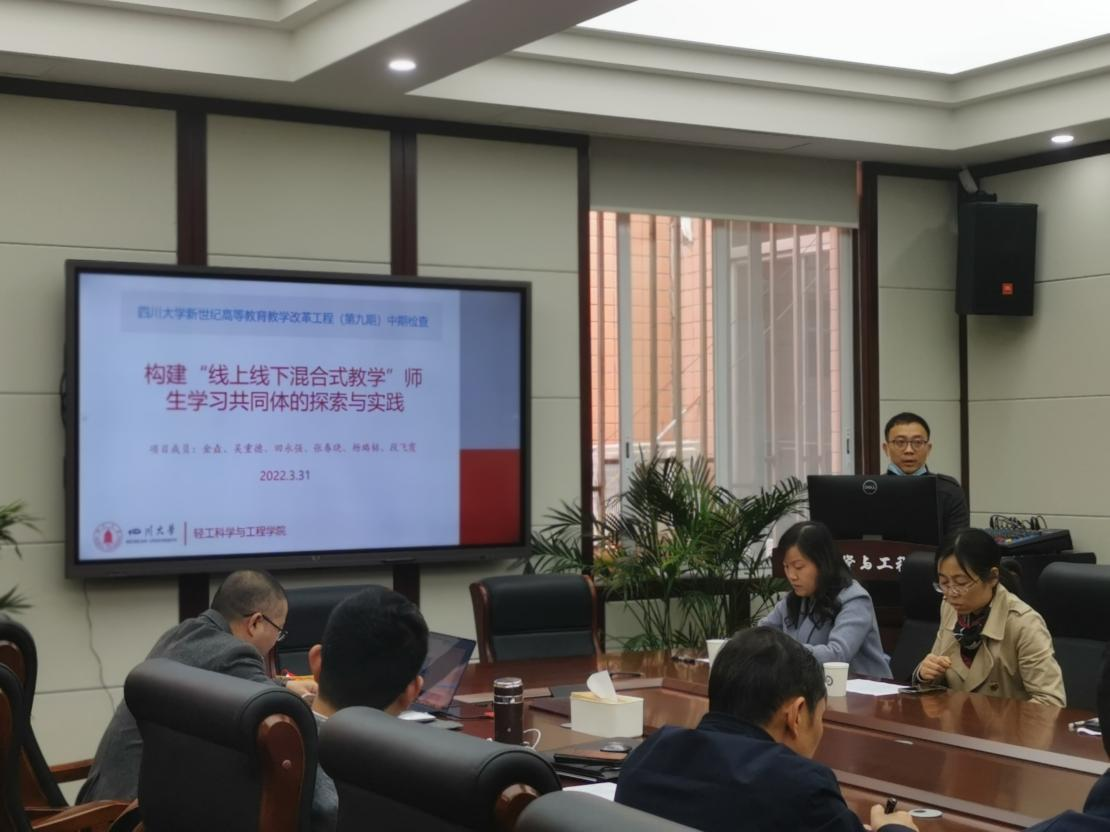 2022年4月1日下午,轻工科学与工程学院教师教学发展活动暨高等教育教学改革研究项目中期检查交流会在纺工附楼205会议室顺利召开。本次交流会共有15项教改项目参与中期检查,其中教育部新工科教改项目1项,教育部新文科教改项目1项,校级教改九期项目6项,院级项目7项。学院李天富书记、彭必雨院长、冯国涛副书记、周建飞副院长、教指委成员、各系所负责人和各项目主要团队人员等出席了会议。会议由彭必雨院长主持。