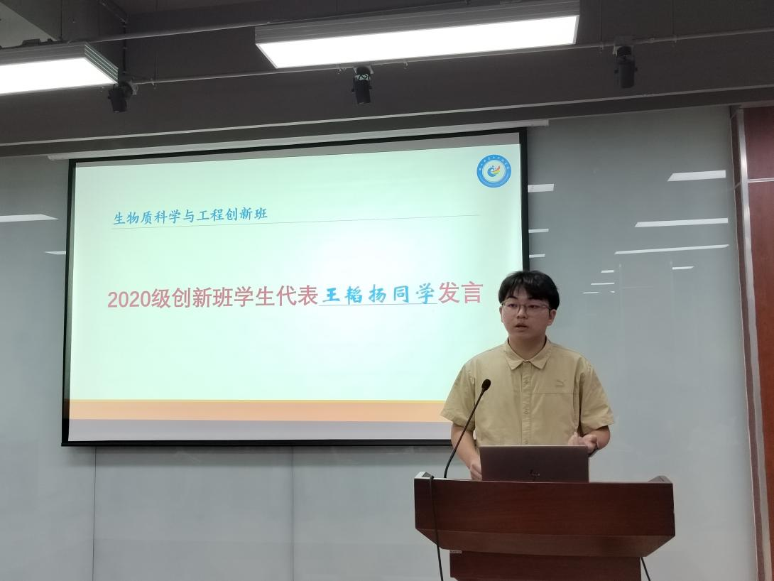 首先,学院党委李天富书记代表学院党政向经过选拔进入创新班的39名同学表示热烈祝贺,向为创新班建设付出辛勤努力的教师表示由衷感谢。李书记希望创新班同学能继续保持优秀,脚踏实地、追求卓越。同时,李书记指出,学院将持续加强支持,与生物质科学与工程创新班平台一起把学院的创新班办出特色、办出水平,努力提升学院本科人才培养质量。