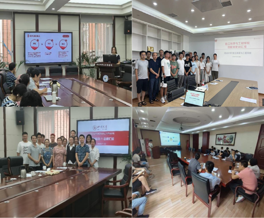 2022年7月22日下午,生物质科学与工程创新班召开2021级《科研轮训1》2020级《科研轮训3》成果汇报工作。其中,生物质转化平台全体同学在纺工205会议室进行轮训汇报平台导师吴重德教授、张春晓副教授和王春华副教授参加了轮训汇报;生物质基础平台全体同学在皮革楼209会议室进行轮训汇报,平台导师林炜教授、李国英教授、李正军教授、阎斌教授、王亚楠教授、曾运航教授、谭淋副教授和肖霄副教授参加了轮训汇报;生物质材料平台2021级同学在皮革楼203会议室进行轮训汇报,平台导师陈意教授、陈胜副教授、王海波副教授、林绍建副研究员及张勇副研究员参加了此次轮训汇报生物质材料平台2020级同学在皮革楼215会议室进行轮训汇报平台导师廖学品教授、程海明教授、刘公岩教授、尚娇娇副研究员及龚贵东助理研究员参加了此次轮训汇报
