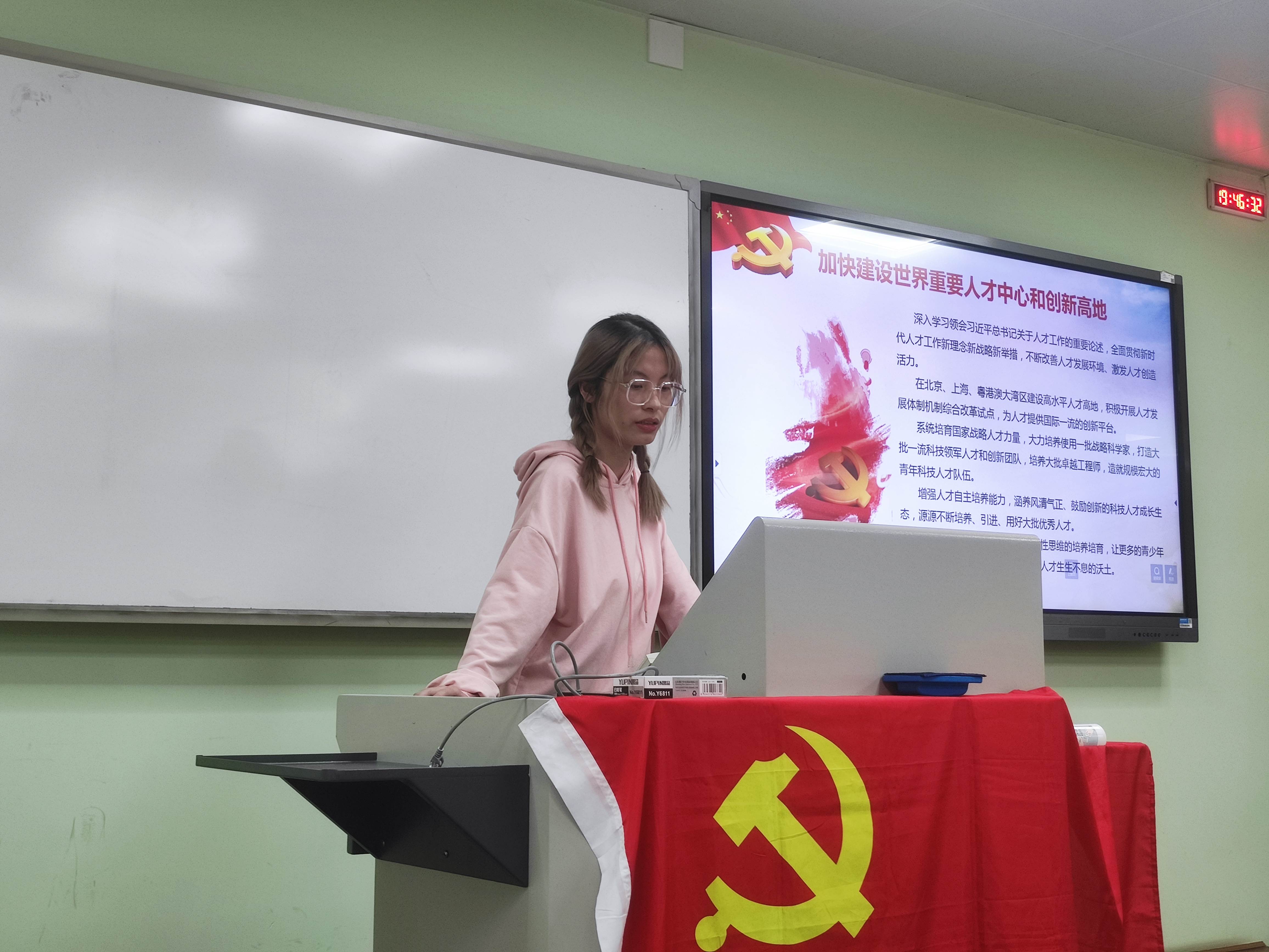 吕忱阳同志从高等教育的角度出发,全面介绍了习近平总书记对于教育、科技、人才的整体论述,尤其是在建设中国特色、世界一流大学的进程中,坚持立德树人根本任务,建立高水平人才培养体系的新理念新要求新任务。参会党员同学就如何成为一名德智体美劳全面发展的建设者和接班人开展了积极讨论。