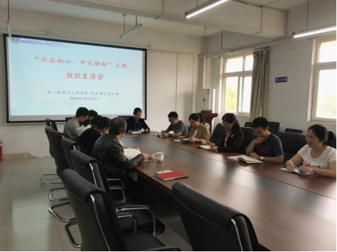 为扎实开展好“不忘初心、牢记使命”主题教育工作,2019年10月11日下午,轻工科学与工程学院 食品教工支部召开了以“不忘初心、牢记使命”为主题教育的组织生活会。吕远平书记将本次主题教育的根本任务、具体目标及重点措施传达给全体党员同志。老师们集中学习了《习近平关于“不忘初心、牢记使命”重要论述选编》,观看了习近平总书记在庆祝中华人民共和国成立70周年大会上发表的重要讲话和国家勋章、国家荣誉称号颁授仪式上的重要讲话,学习了《铸就辉煌的教育道路——写在中华人民共和国成立七十周年之际》《教育部关于追授于瑾同志“全国优秀教师”荣誉称号的决定》。老师们就学习内容结合实际工作展开了丰富的讨论,一致认为此次组织生活会主题鲜明、内容丰富、效果明显,是一次理论学习的再提升、能力素质的再充电。