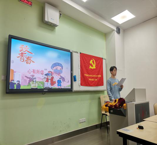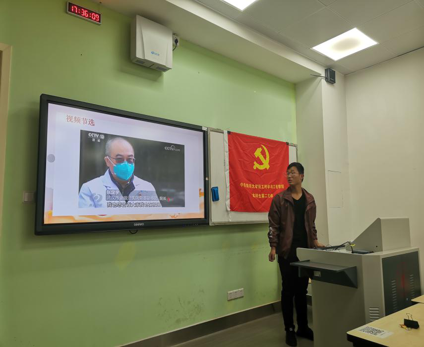 新冠肺炎疫情来势汹汹,对所有人都是一场特殊考验。面对疫情,无数党员同志冲锋在前,用实际行动践行了初心使命。20201120轻工科学与工程学院本科生第二党支部围绕新冠肺炎疫情中党员群体先进事迹,在基教A302进行一场“劳动育人、筑梦青春、未来可期”主题党日活动。出席活动有支部全体党员和学院党政办李艳老师,活动由支部书记杨维同志主持。