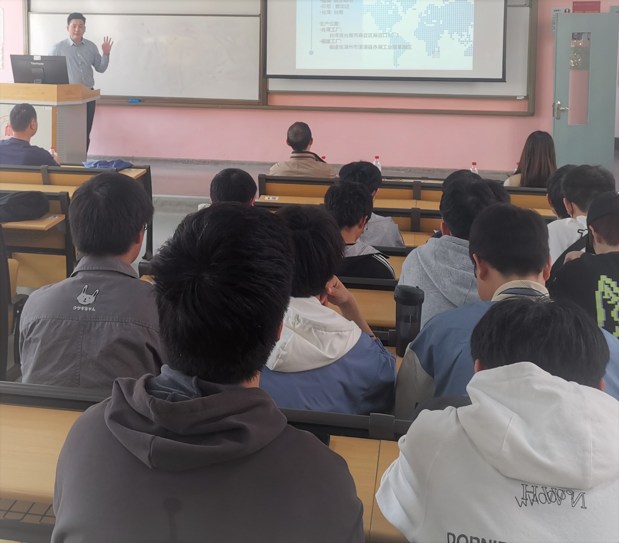 我校卓越工程师实习基地企业代表福建泰庆皮革有限公司人力资源部谢文伟主任、蔡小丹人事专员专程从福建莅临我系参与了此次动员大会。谢主任介绍了企业概况和人才需求,着重介绍了公司实习基地和往届卓工班实习情况。谢主任代表企业热烈欢迎同学们积极报名参加卓工班,到泰庆皮革有限公司实习、就业,期待今年夏天能与同学们在工厂再次相会。