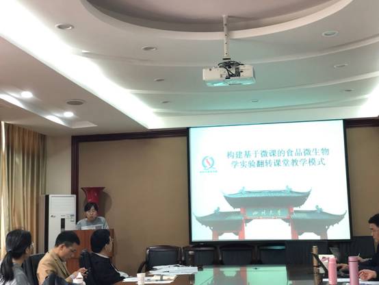 图8张佳琪老师汇报项目《构建基于微课的食品微生物学实验翻转课堂教学模式》进展情况