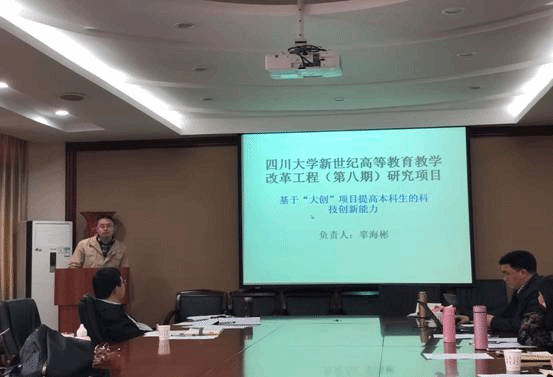 图9辜海彬副教授汇报项目《基于“大创”项目提高本科生的科技创新能力》进展情况