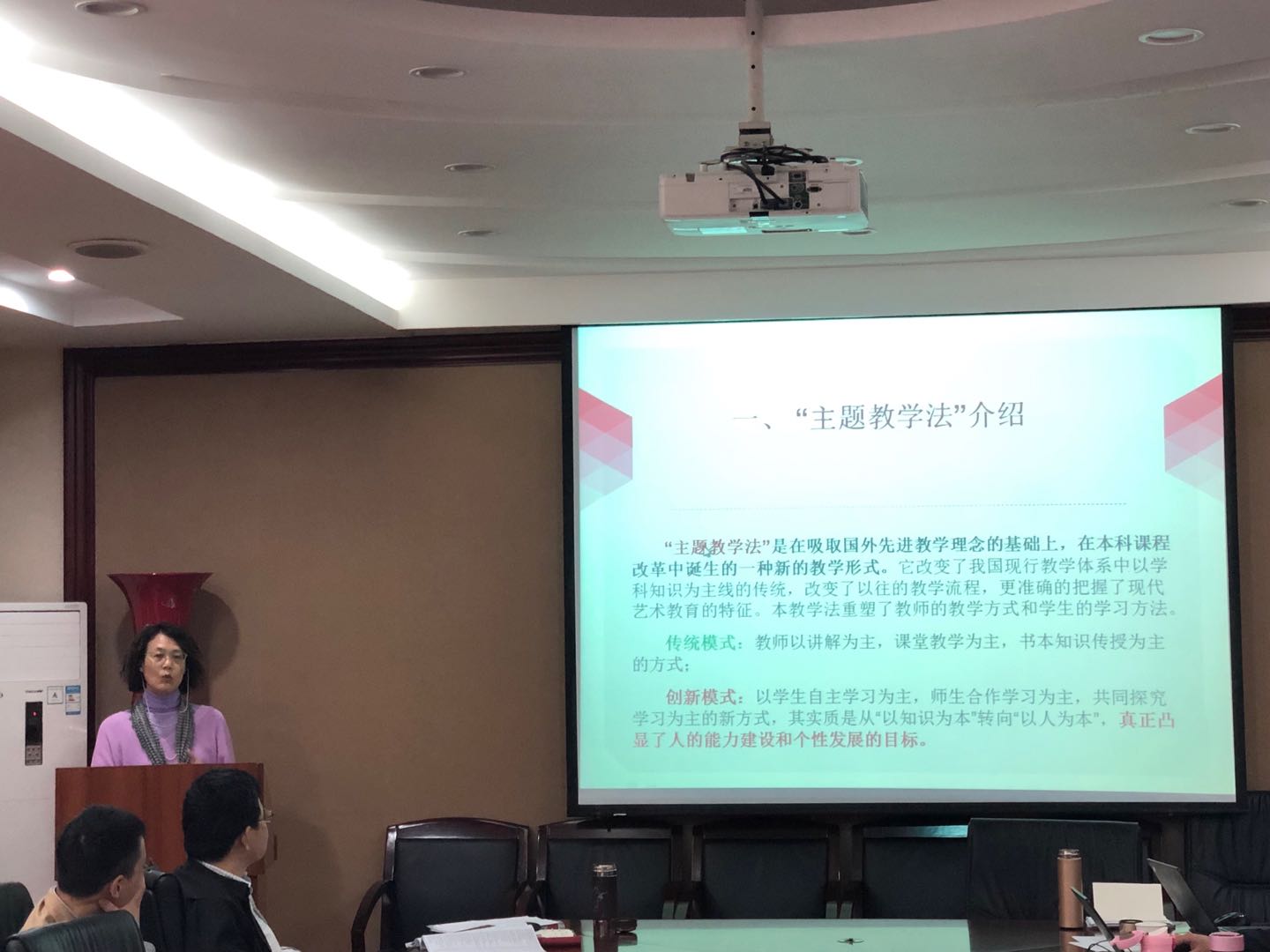 图6李晓蓉老师汇报项目《主题教学法在《图案构成与设计》课程中的应用》进展情况