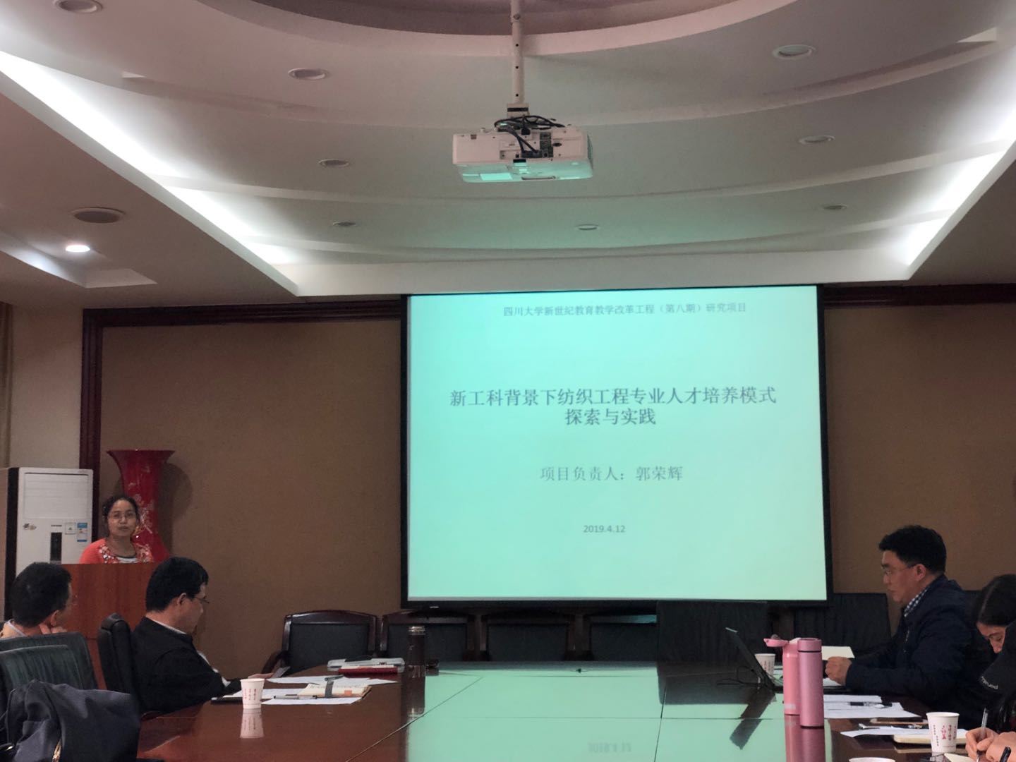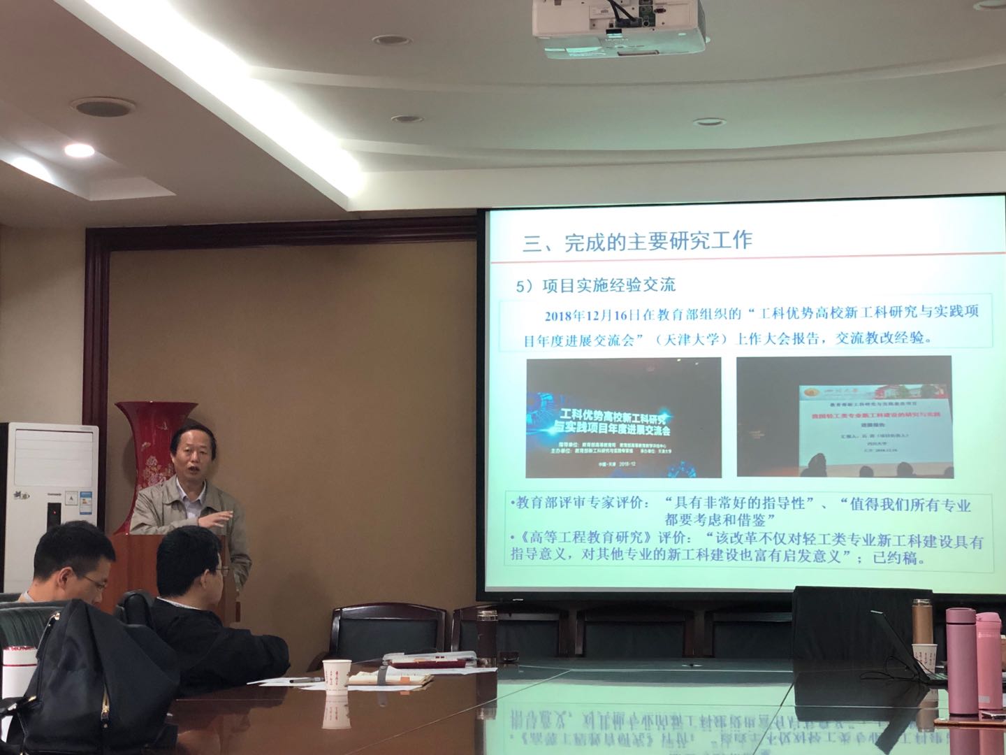 图4郭荣辉副教授汇报项目《新工科背景下纺织工程专业人才培养模式探索与实践》进展情况