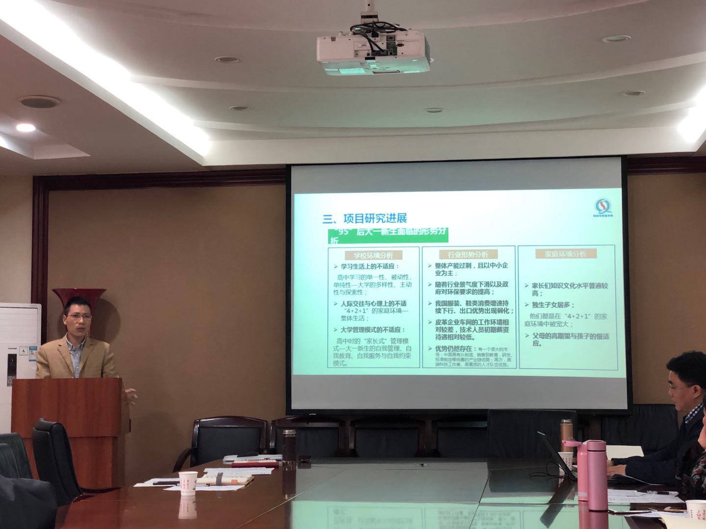 图2冯国涛老师汇报项目《“95”后大一新生协同教育探索与实践》进展情况