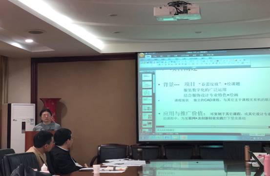 图7冯洁老师汇报项目《与项目制相结合的服装专业数字化课程建设与创新实践》进展情况