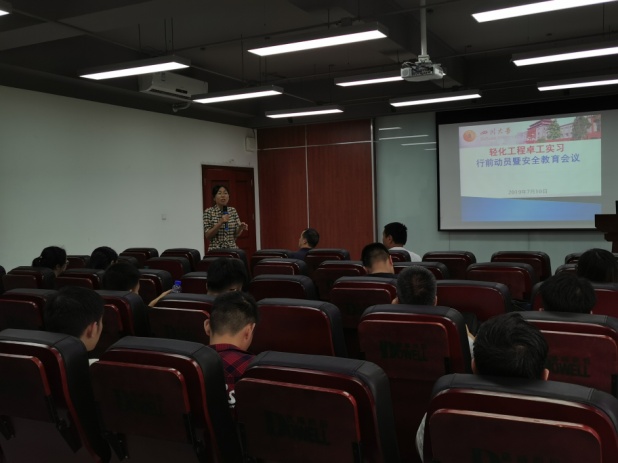 2019年7月10日14:30,轻化工程教研室在皮革楼215报告厅举行了“轻化工程卓工实习行前动员及安全教育会议”,生物质与皮革工程系系主任林炜教授、副系主任程海明教授、教研室主任但年华副教授、张金伟老师、颜俊老师、辅导员王舒灏和卓工班全体学生参加了本次会议。