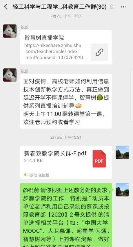 生物质与皮革工程系组织开展线上教学的技术指导