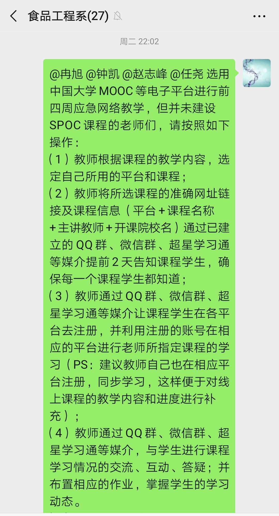 食品工程系进行点对点线上教学工作布置