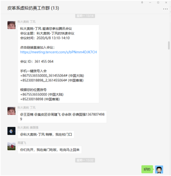 2020年6月8日,轻化工程专业的“珍贵裘皮高值化染色工艺虚拟仿真实验”项目研讨会在皮革楼203会议室顺利召开,项目组成员王亚楠、周建飞、张金伟、余跃、唐国强(科大奥锐)、丁风(科大奥锐)参加了此次会议。