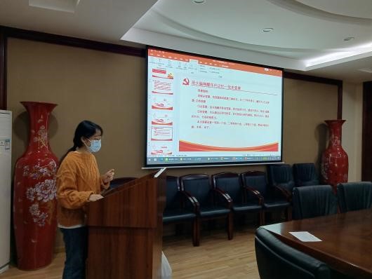 在专题学习会上,曹艳妮同志带领全体与会党员对二十大报告中加快实施创新驱动发展战略部分作了深入学习,激励同学们以更加饱满的热情投入基础研究,为科技创新和高质量的发展提供重要支撑。此外,曹艳妮同志以视频学习的形式帮助党员同志们回顾了新时代中国取得的重大成就,以及对中国共产党和人民事业具有重大现实意义和深远历史意义的众多事件,讲述了以载人航天精神、女排精神、爱国主义精神等为代表的中国精神谱系,进一步坚定了支部党员的“四个自信”。