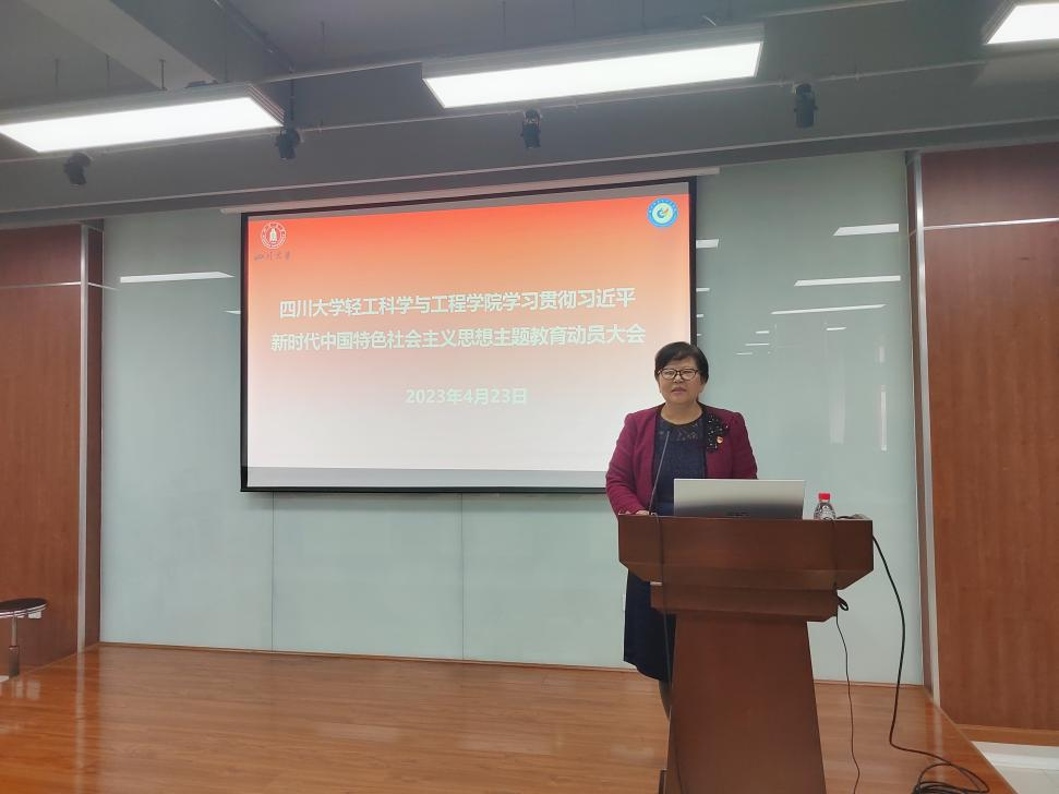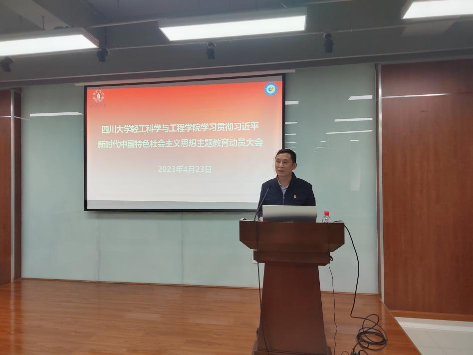 2023年4月23日下午,我院在皮革楼215报告厅召开学习贯彻习近平新时代中国特色社会主义思想主题教育动员大会。学校主题教育第四指导组王素霞组长及指导组全体成员莅临指导,学院领导班子成员、两委委员、专职组织员、党支部支委、系所负责人、科级干部、辅导员及民主党派代表出席会议。学院党委书记李天富主持会议,并作了题为《凝心铸魂,实干担当——扎实开展主题教育,推动学院高质量发展》的动员报告。