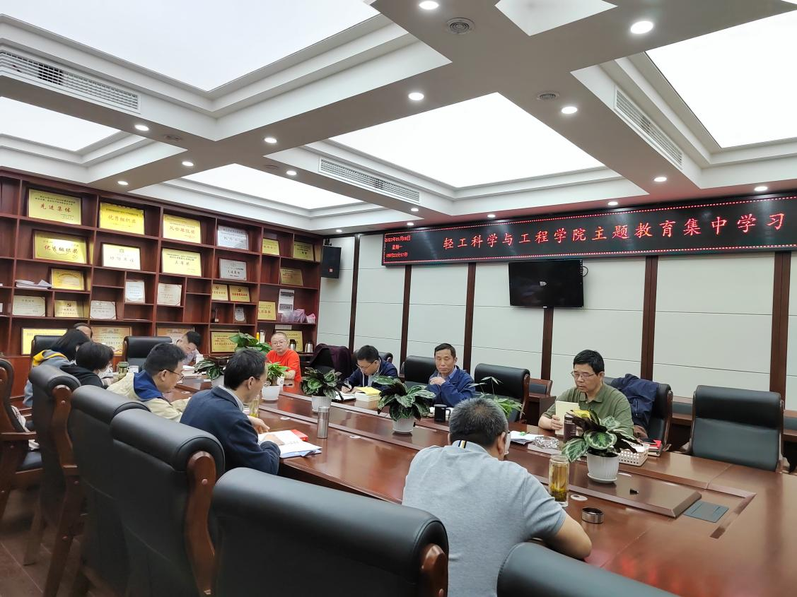 为进一步贯彻落实党中央和教育部党组的部署要求,学院党委高度重视,第一时间召开党委会及扩大会议研究部署,认真制定《中共77779193永利集团轻工科学与工程学院委员会关于深入开展学习贯彻习近平新时代中国特色社会主义思想主题教育的实施方案》,并成立主题教育领导小组办公室及主题教育监督小组。根据学院实施方案安排,进一步制定《轻工科学与工程学院关于学习贯彻习近平新时代中国特色社会主义思想主题教育理论学习方案》,列出重点任务和工作要求,结合实际情况,制订了详细的学习计划表。读原著、学原文、悟原理,将学习内容与学院事业发展实际情况紧密结合起来,及时跟进学、联系实际学、笃信笃行学,不断增强政治自觉、思想自觉、行动自觉,以强烈使命担当开展好主题教育,切实发挥领导干部的带头表率作用。