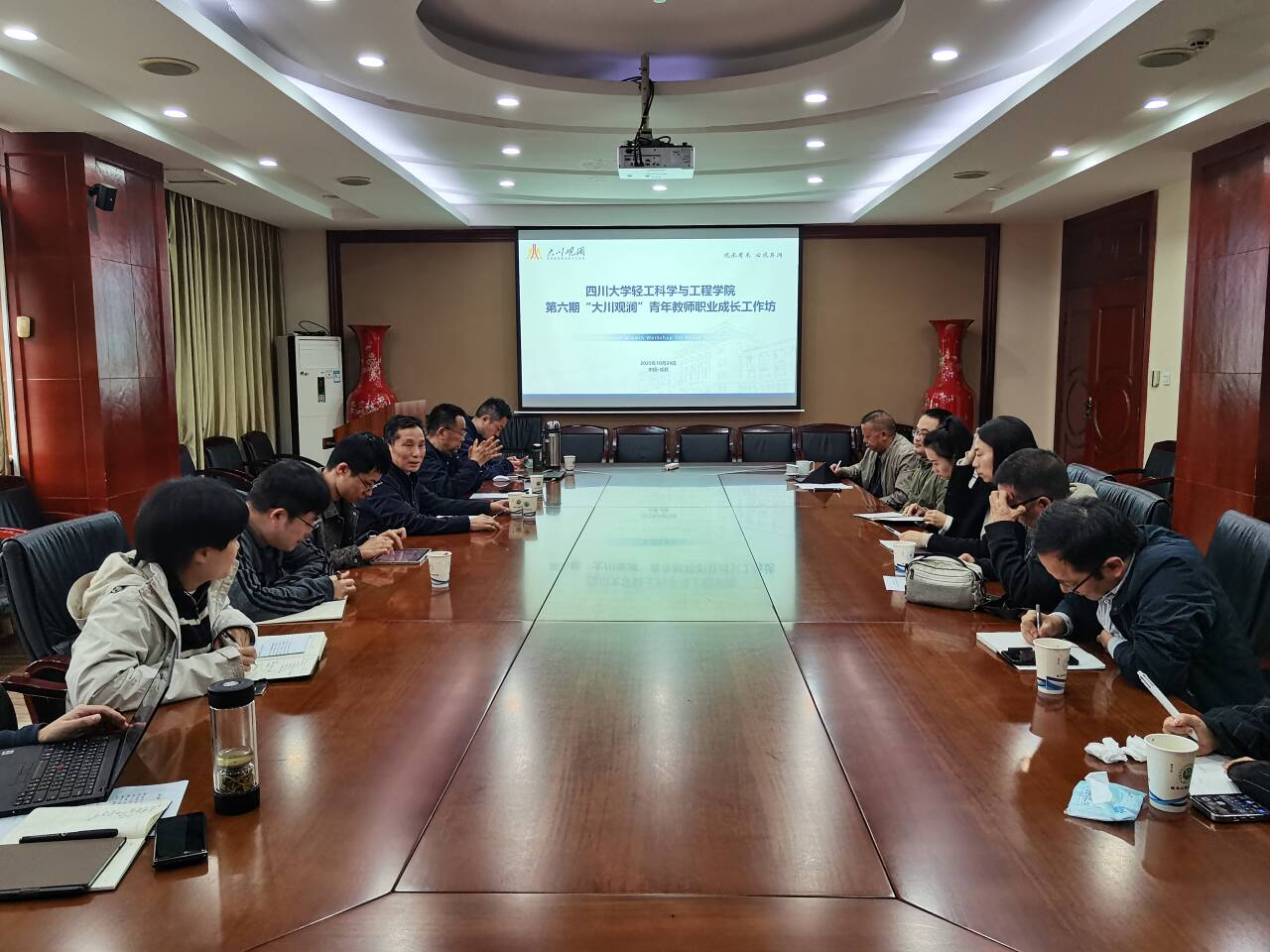 10月24日上午,轻工科学与工程学院在皮革楼209会议室举办第六期“大川观澜”青年教师职业成长工作坊。学院班子成员、教授委员会代表、国家高层次人才代表、部分青年教师参会。学院党委李天富书记主持会议。