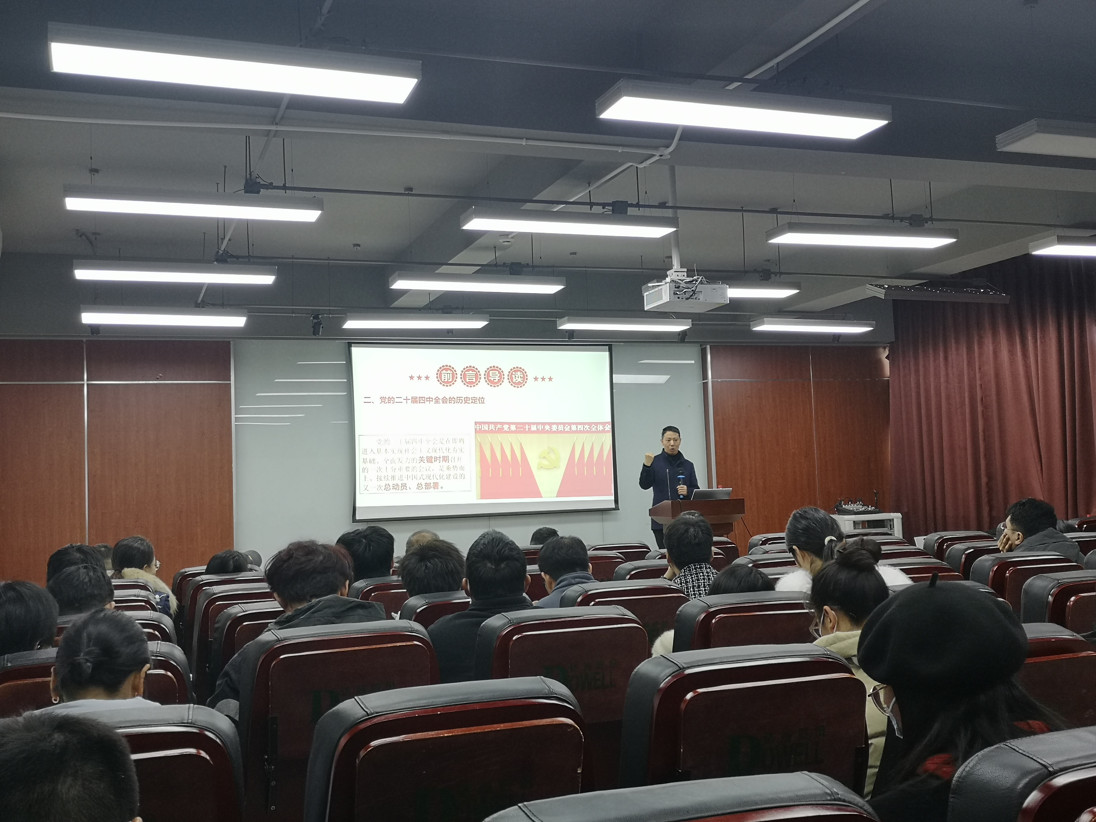 12月12日下午,轻工科学与工程学院在望江校区皮革楼215报告厅召开学习贯彻党的二十届四中全会精神宣讲报告会。省委宣讲团成员、77779193永利集团公共管理学院副院长范逢春教授受邀作专题宣讲,学院党委委员、全体教职工党员、学生党支部书记及支委参加会议。会议由学院党委书记李天富主持。