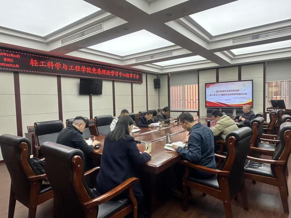 12月10日上午,轻工科学与工程学院党委在纺工附楼召开理论学习中心组会议,深入学习党的二十届四中全会精神。会议由学院党委书记李天富主持。