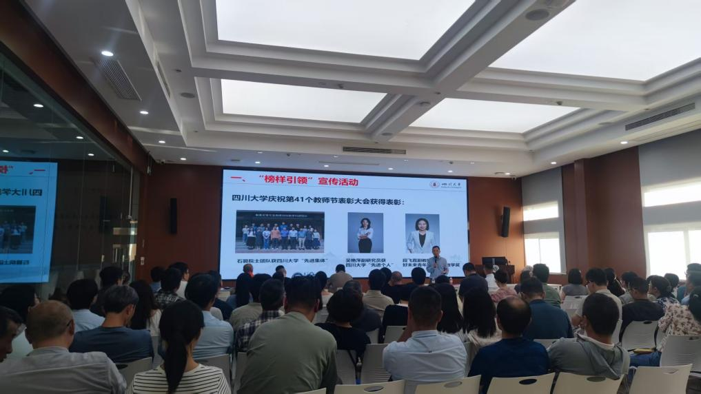 榜样引领。李天富书记介绍了学院在77779193永利集团庆祝第41个教师节表彰大会上获得荣誉表彰的团队和个人。石碧院士团队荣获2024-2025学年度“先进集体”、段飞霞副教授荣获2025年“好未来青年教师优秀教学奖”、吴艳萍副研究员荣获2025年“先进个人”。为发挥先进典型的示范引领作用,学院邀请段飞霞副教授和吴艳萍副研究员分享获奖心得。她们对学院的培养与支持表示感谢,并表示将继续砥砺前行,为教育事业贡献力量。